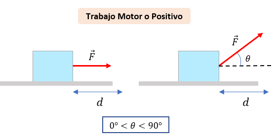 Cuando la fuerza forma un ángulo agudo con el desplazamiento, se considera a la fuerza como activa por que es capaz de aumentar la rapidéz de la partícula. Por lo tanto el trabajo es positivo.